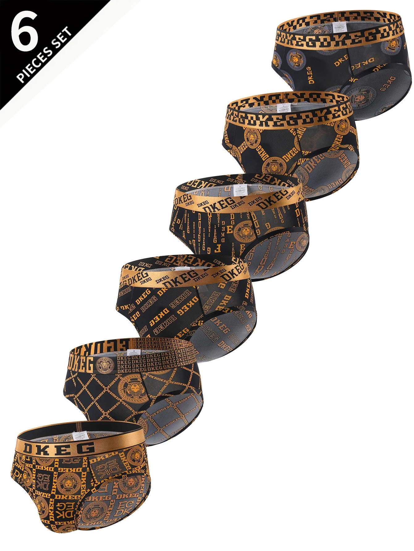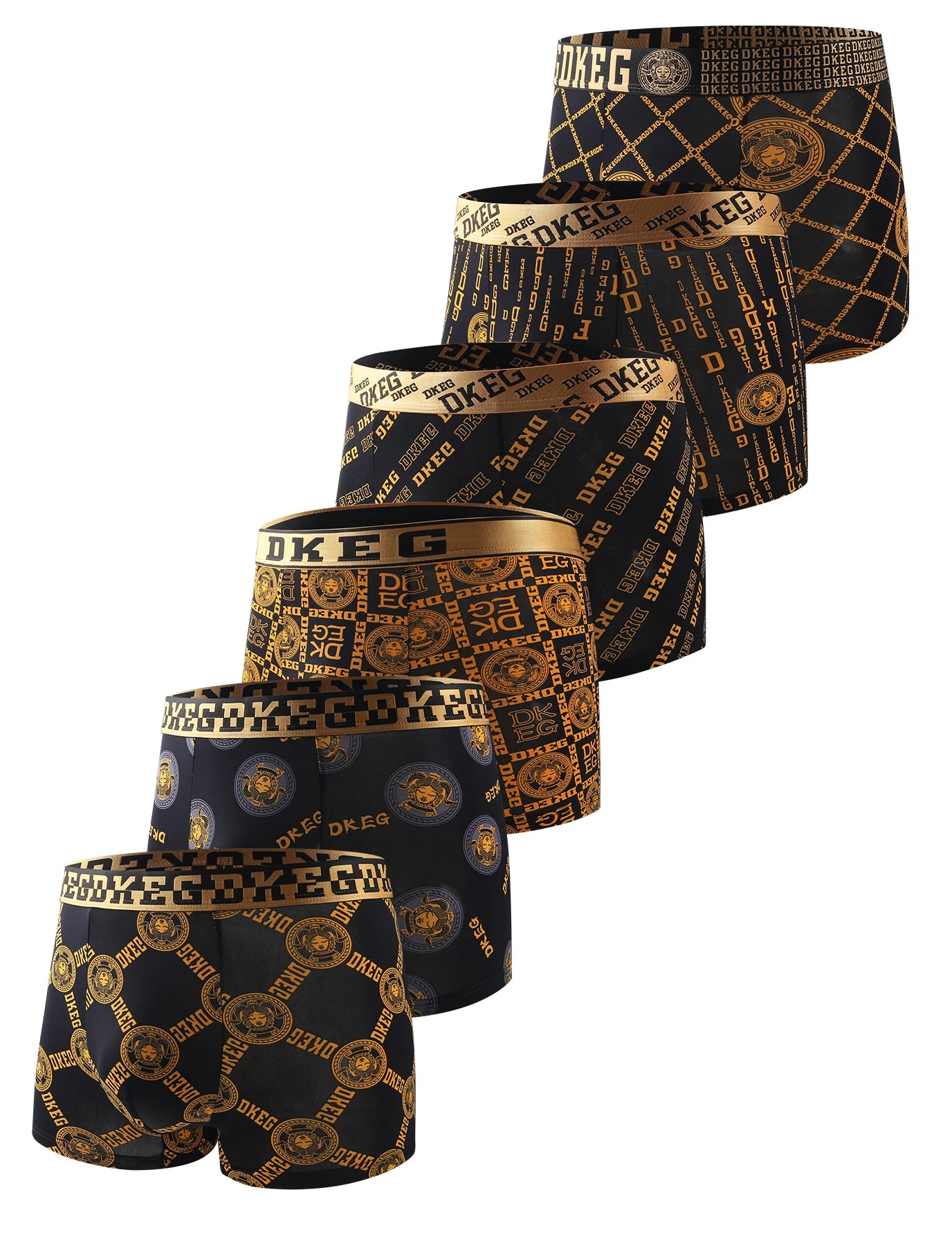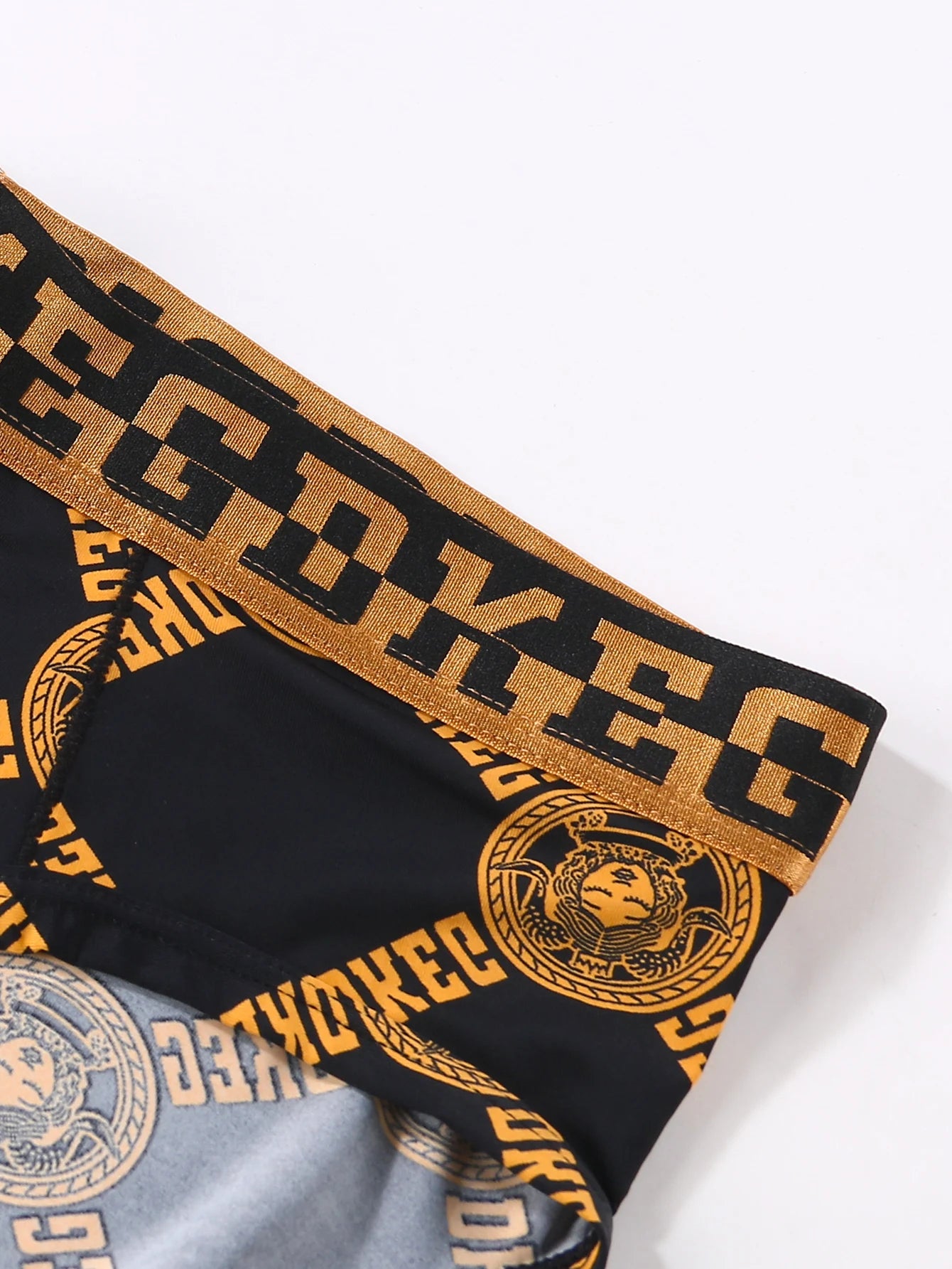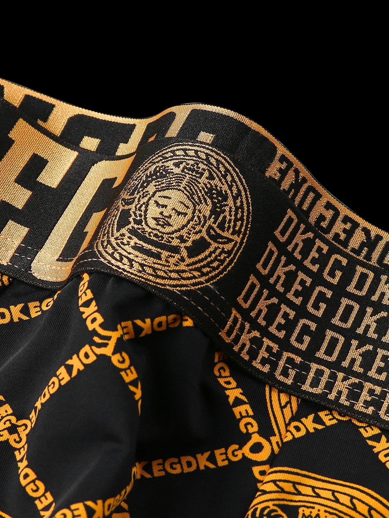 6pcs large size men's luxurious black and gold printed flat angle long underwear-super soft ice feeling, antibacterial breathabl