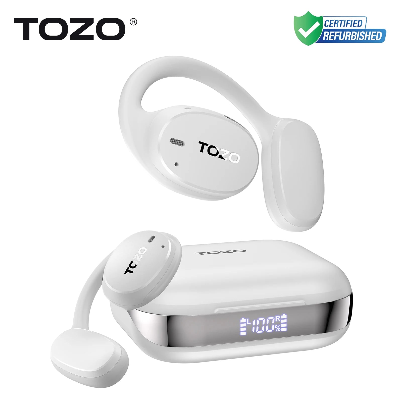 Refurbished TOZO OpenEgo Headsets Open Ear Headphone Bluetooth Dual Mic Clear Call Earphones with Earhooks IPX5 Water-resistant