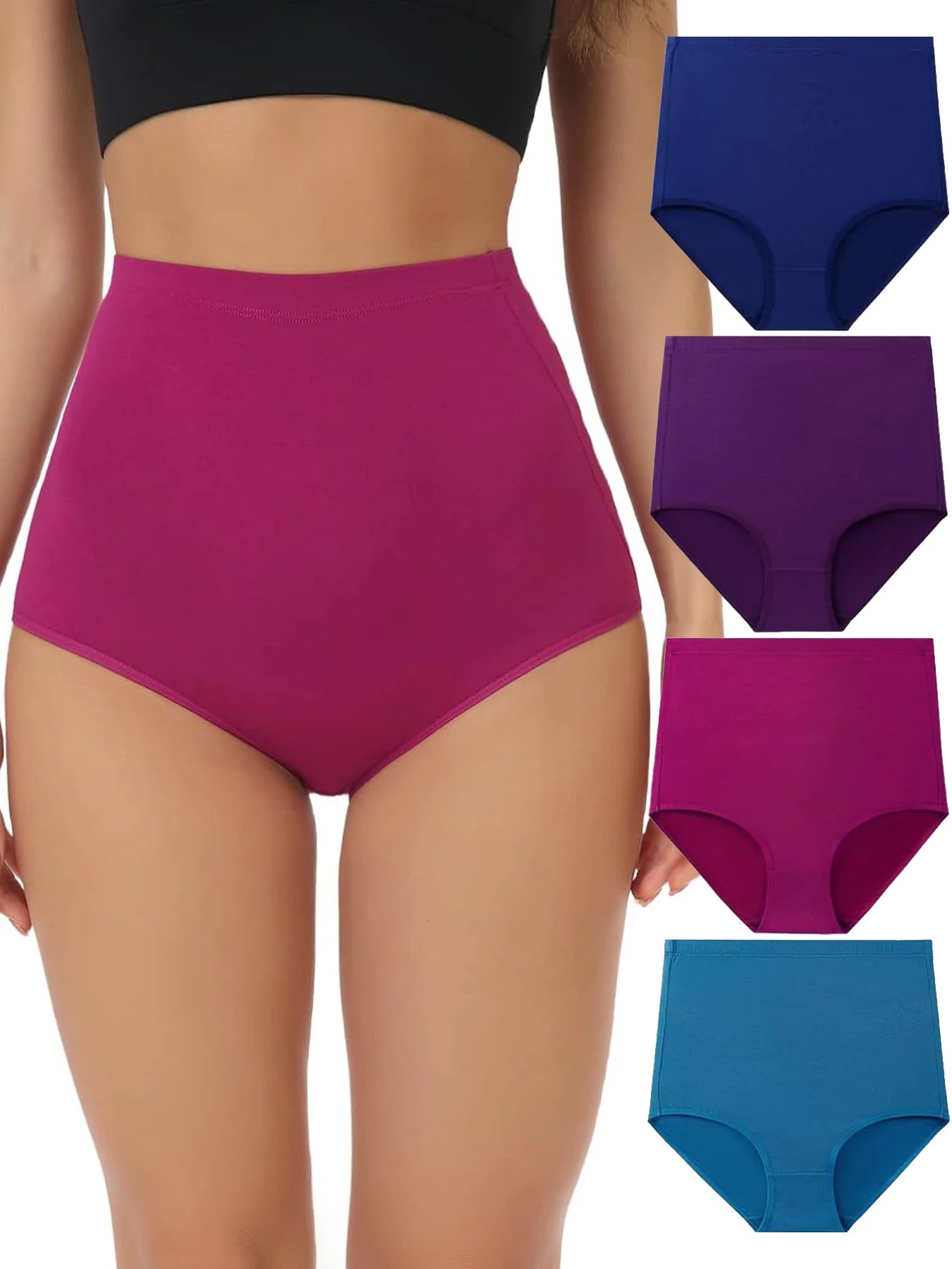 4PCS women's high waisted panties, women's solid color underwear, slightly shaping shapewear, women's Lingerie