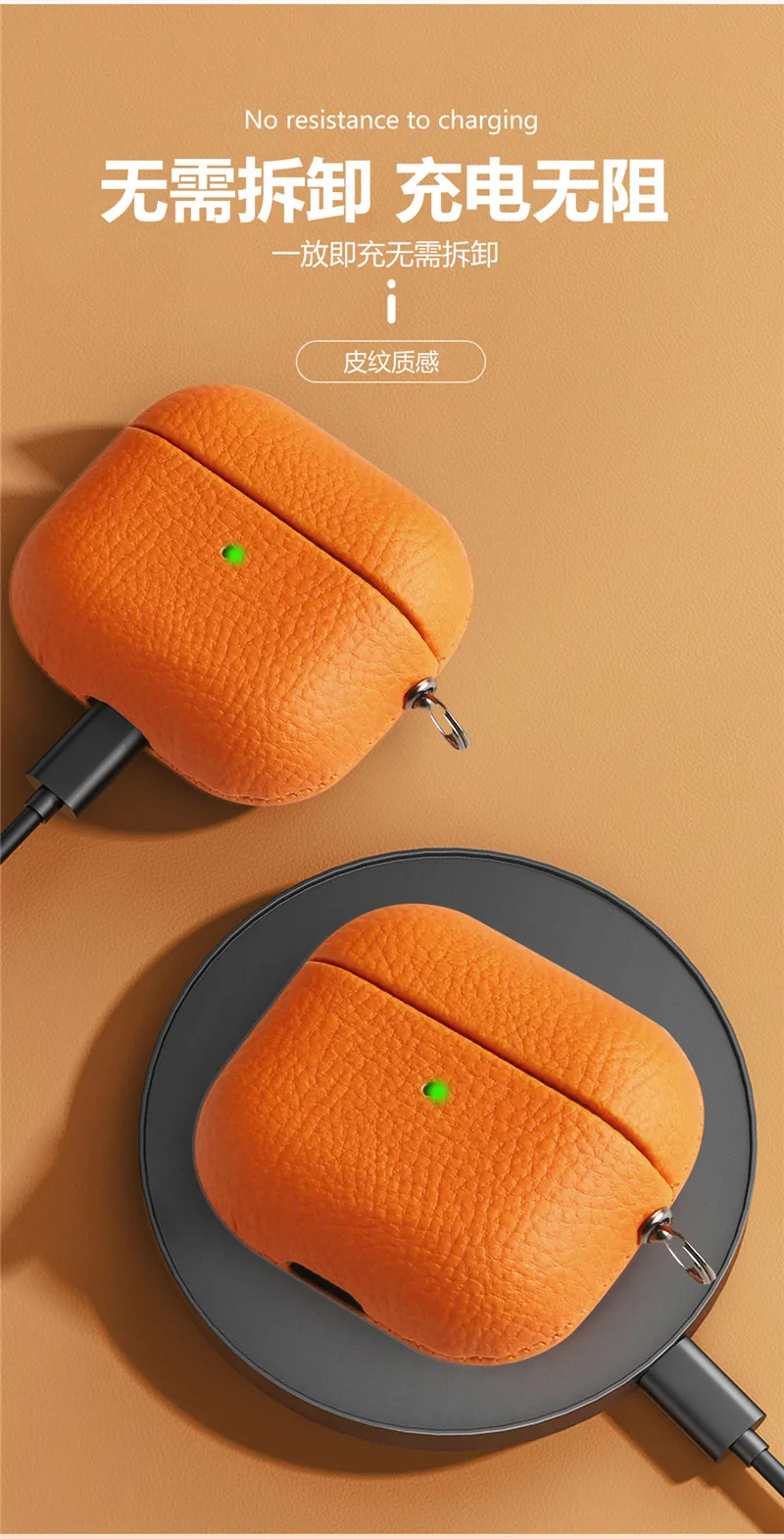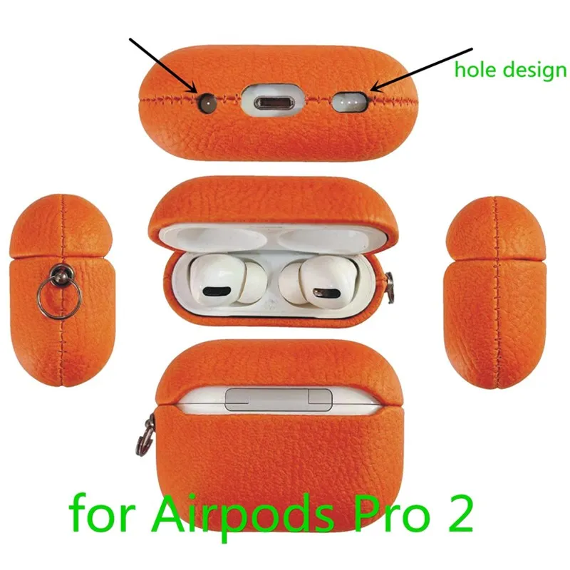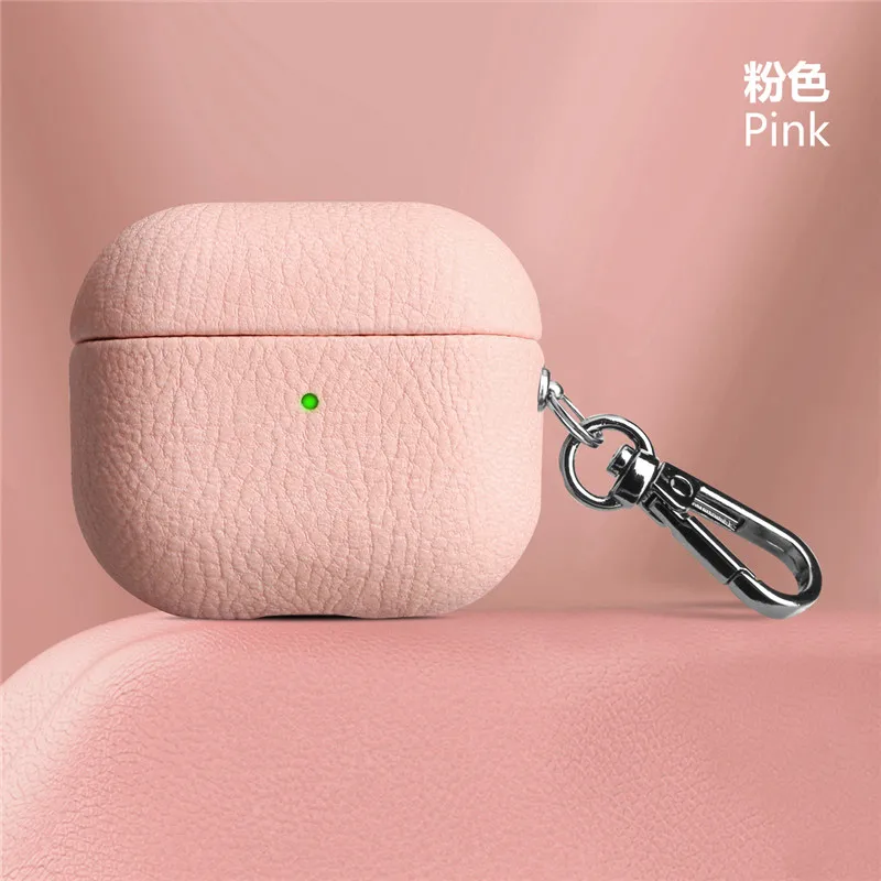 Genuine Leather For AirpPods Pro 2 Case AirPods 1 2 3 cover Bluetooth Earphone Accessories Lychee Pattern Cowhide With Buckle