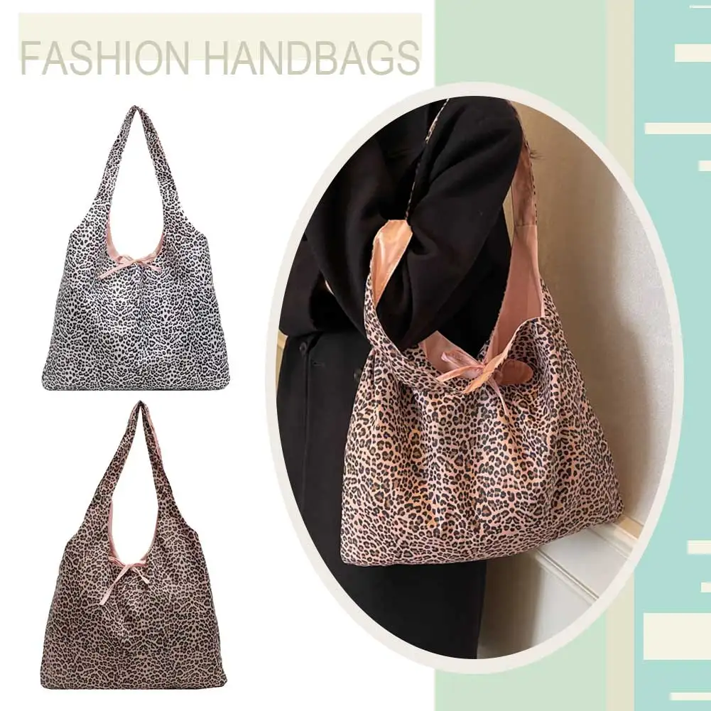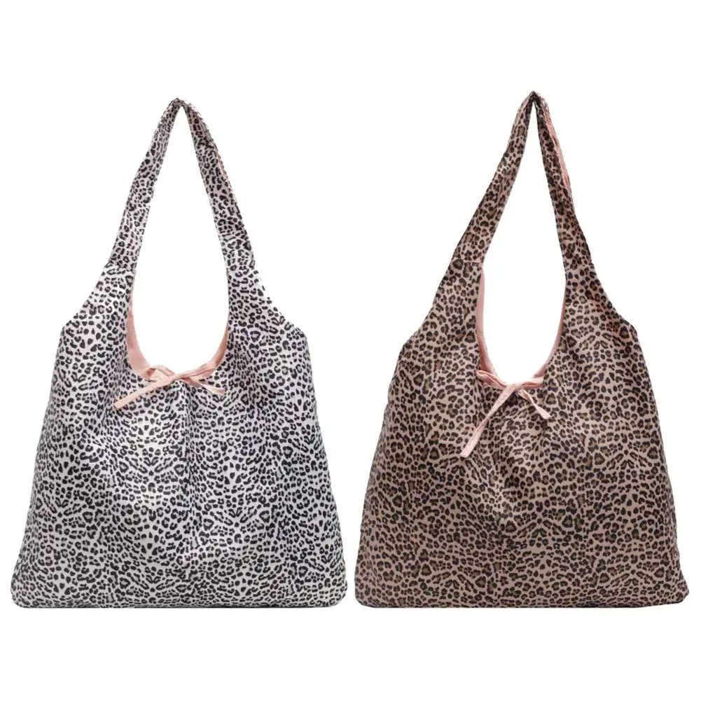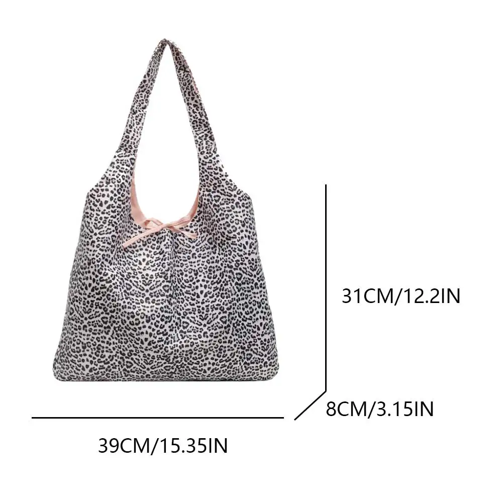 Tote Bag for Women Leopard Print Shoulder Bag Nylon with Interior Pocket Purse and Handbag Slouchy Hobo Bag Work Travel Bag