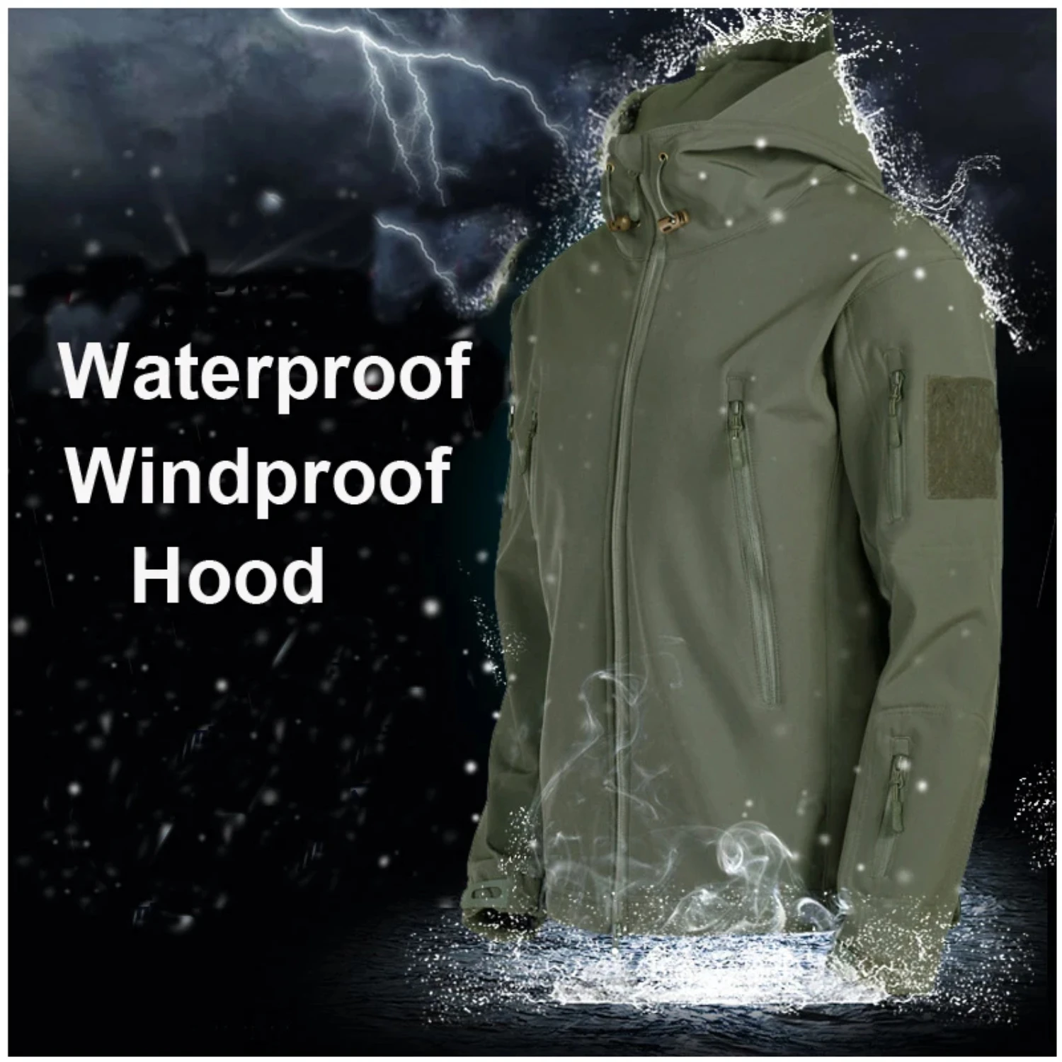 1. Stay warm and dry in any weather with our versatile and durable waterproof fleece jacket, ideal for outdoor adventures like hunting, camping, and more.