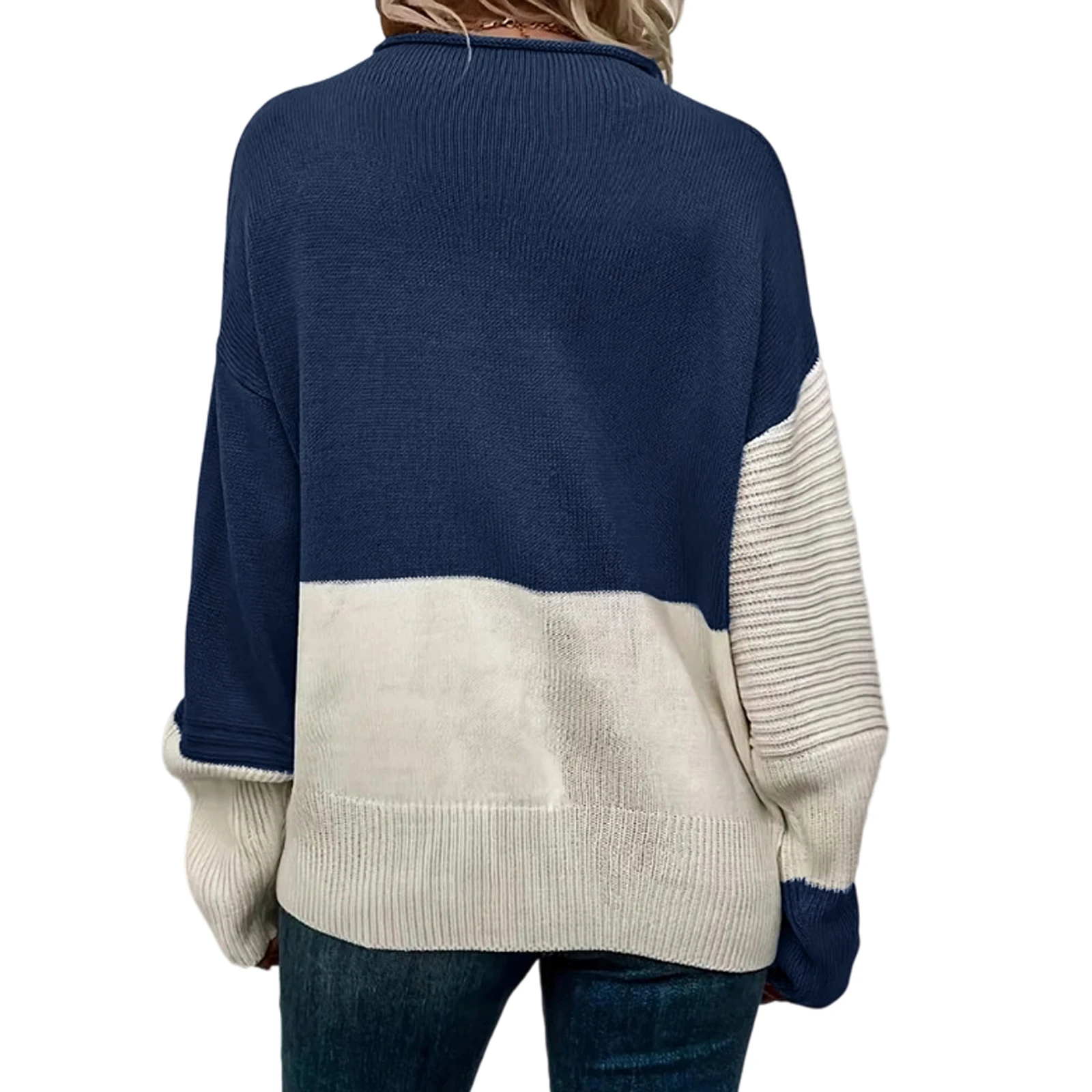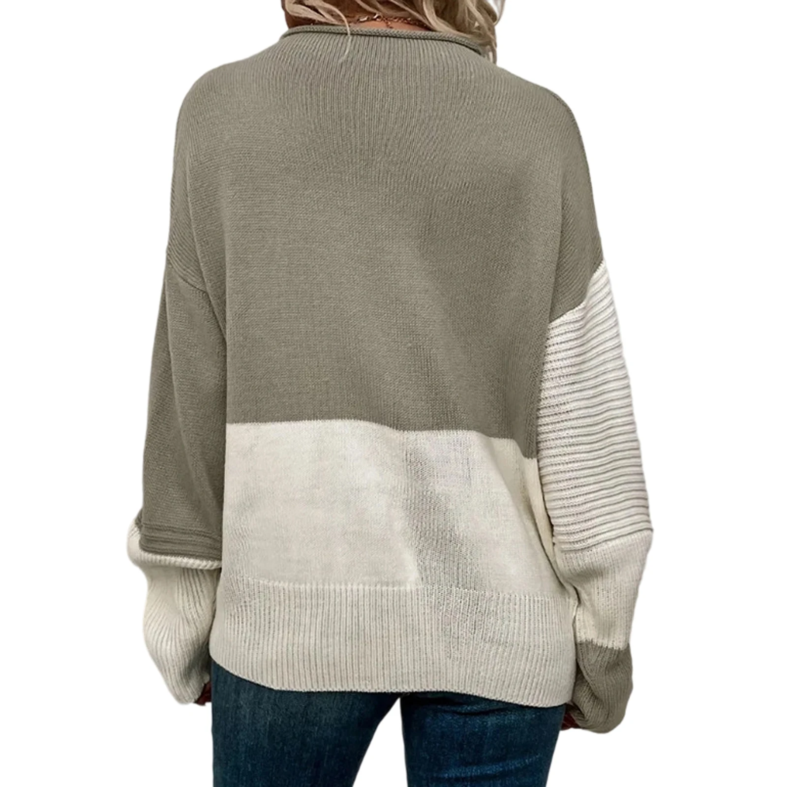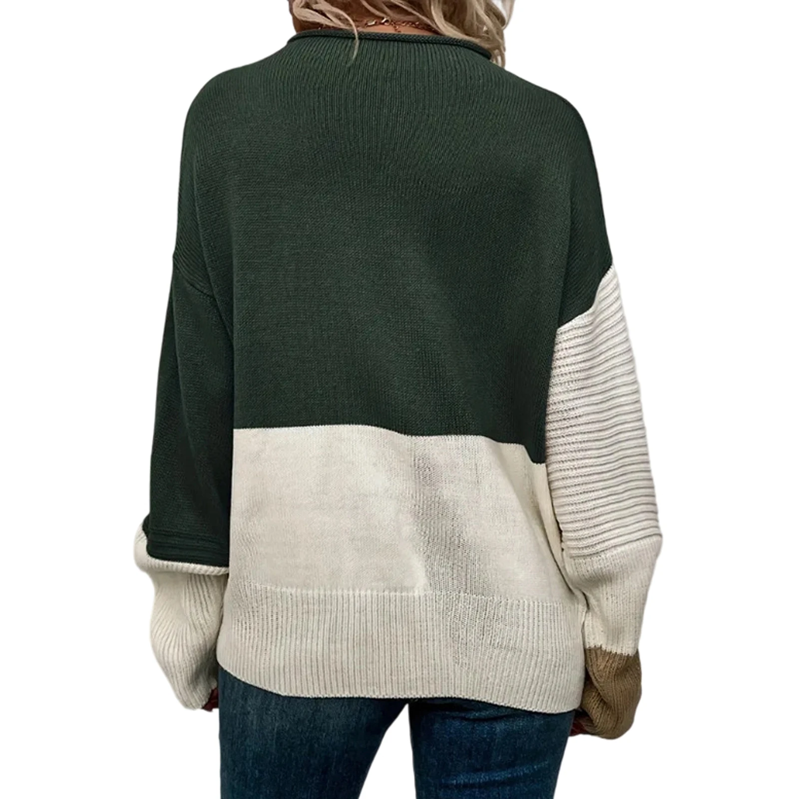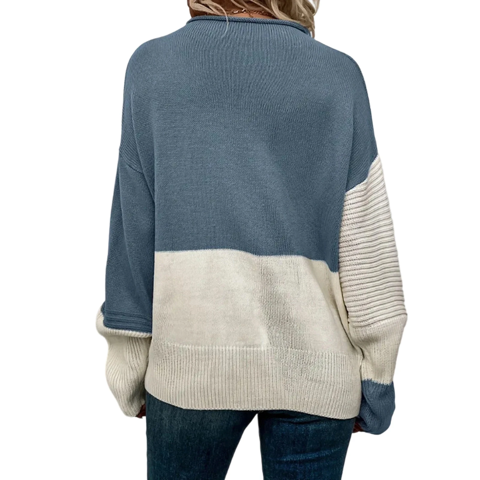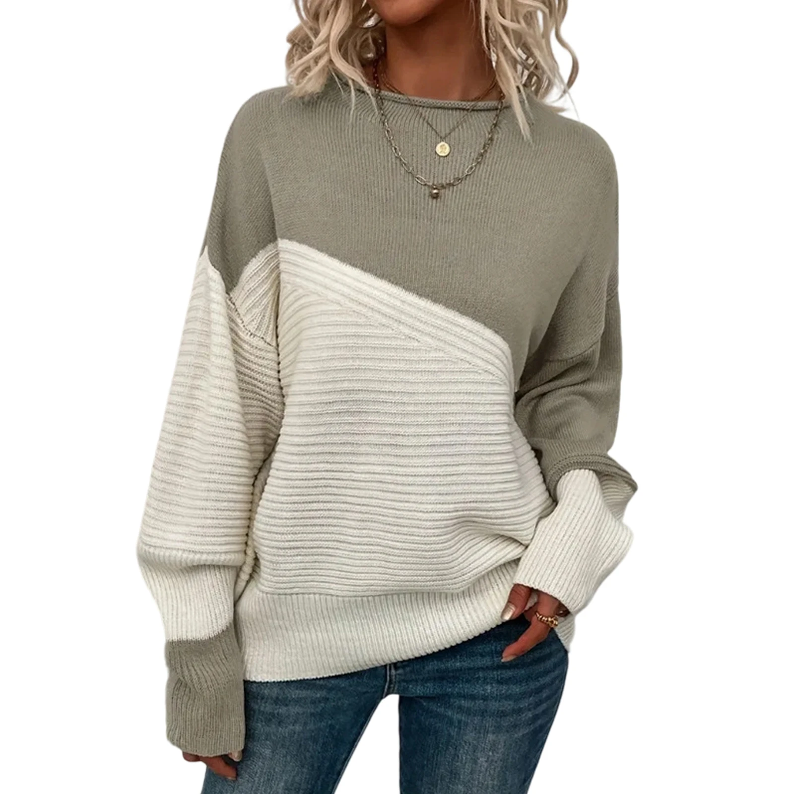 Women'S Casual Round Neck Colorblock Pullover Sweater Loose Casual Long Sleeve Contrast Color Top Pulls Femmes Woman Clothes