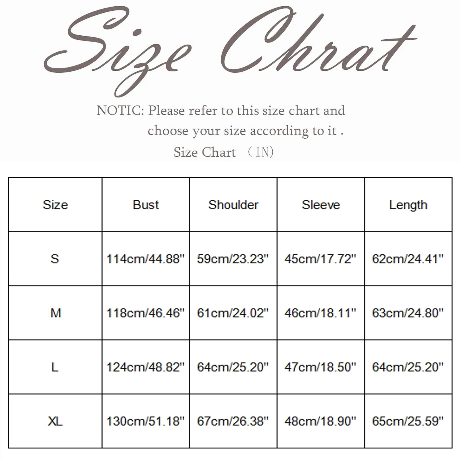 Size Bust Shoulder Sleeve Length